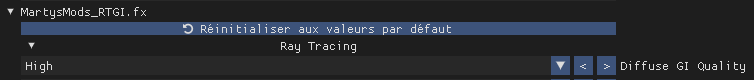 C'est ici qu'on va pouvoir changer les paramètres de ReShade, nos effets de lumières, détails et autres. On pourra aussi faire des tests.