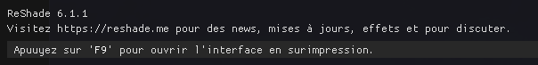1. Si le popup n'apparait pas, je vous conseille de désinstaller complètement ReShade et de recommencer, ou demander de l'aide.