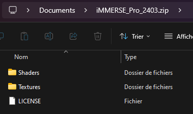 Pour les shaders, nous aurons besoin des shaders MartysMods. Pour les avoir, il faut souscrire au patreon, puis télécharger les fichiers se trouvant sur leur discord. Cela devrait être iMMERSE_Pro_XXXX.zip